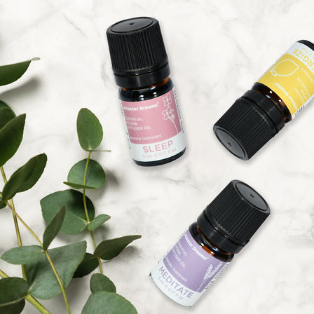 Energise, meditate and sleep in complete peace with the Essential Oil Kit for Happy Sleep.